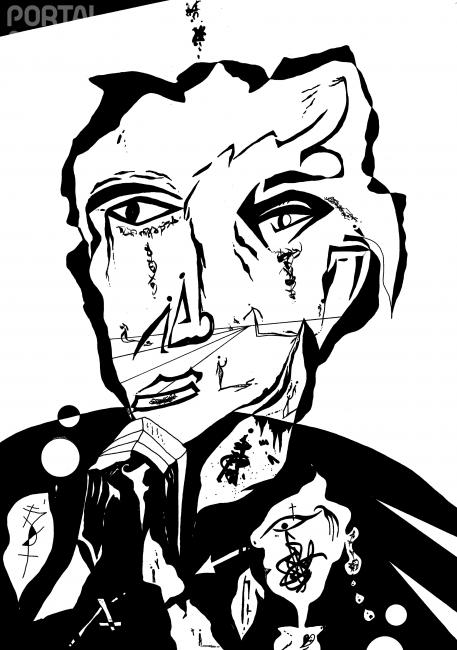 Desenho de estilo único a preto e branco.