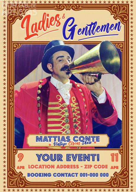 Apresentador/Mestre de Cerimónias – Mais de 500 espetáculos como Ringmaster no Circus Montini (UK, 2022-2024). Voz firme, presença carismática, timing perfeito. Multilingue (IT/PT/EN/ES). Solução de emergência para eventos que não podem falhar. Experiência em circo, galas corporativas e festivais.