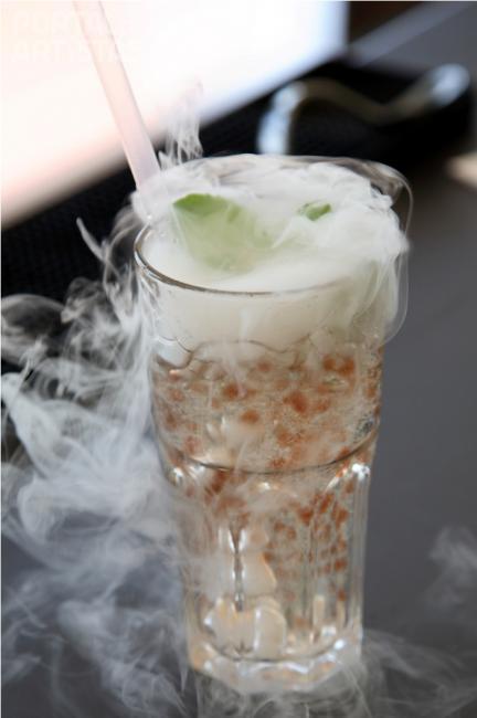 Os nossos bartenders animam a sua festa com verdadeiras exibições com garrafas e shakers, enquanto preparam as bebidas.