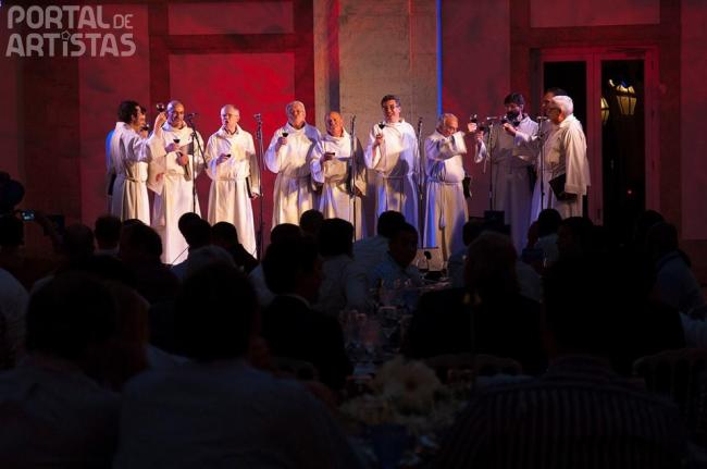 Descrição: Somos um grupo vocal masculino fundado em 1974 por membros do Coro Gulbenkian. O nosso repertório é muito alargado, estendendo-se do canto gregoriano à música popular, passando pela música religiosa e profana dos períodos medieval, renascentista, barroco, clássico e romântico. A nossa música pode convidar à contemplação ou à festa, à interiorização ou ao brinde. Criamos o ambiente sonoro adequado a cada situação específica. Além dos concertos “normais”, cantamos em jantares, almoços, cocktails, aberturas e encerramentos de congressos e manifestações similares, visitas de grupos a monumentos (igrejas ou outros), recriações históricas dos mais diversos acontecimentos, cerimónias várias, etc., etc., etc. Todas as possibilidades estão em aberto. Consoante a natureza das situações e as características dos locais, vestimos hábitos de monge ou smoking. Não excluímos, no entanto, outras possibilidades.