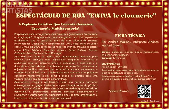 -EWIVA: Clownerie, equilibrismo e malabarismo. link video promo: https://youtu.be/uYyILY77-40