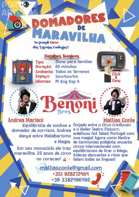 Espetáculos One-Man Show (45min) – Três produções originais de circo-teatro com cenografia própria: